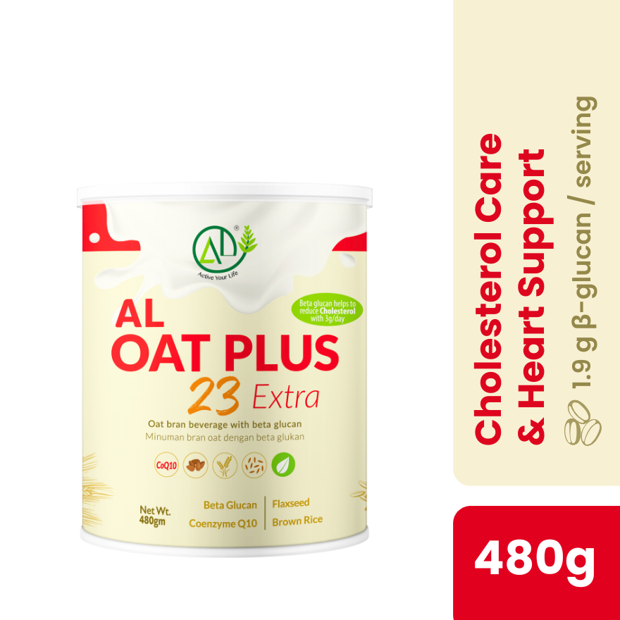 AL Oat Plus 23 Extra ialah minuman oat penyokong kesihatan kardiovaskular yang dirumus dengan teliti menggunakan dedak oat dan serbuk oat berkualiti tinggi, membekalkan 3g beta-glukan aktif setiap hidangan untuk membantu menurunkan kolesterol LDL dan jumlah kolesterol. Diperkaya dengan Omega-3 daripada biji rami dan Koenzim Q10, formulasi ini menyokong fungsi jantung, mengawal paras gula dalam darah, serta melindungi daripada pengoksidaan kolesterol LDL. Dengan tambahan beras perang kisar untuk penghadaman yang lebih lancar dan rasa semula jadi, AL Oat Plus 23 Extra ialah pilihan yang lazat dan terbukti secara saintifik untuk mengekalkan kesihatan kardiovaskular secara menyeluruh.