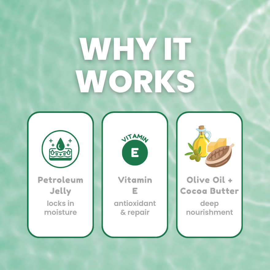 - Petroleum Jelly – Locks in moisture and forms a protective barrier